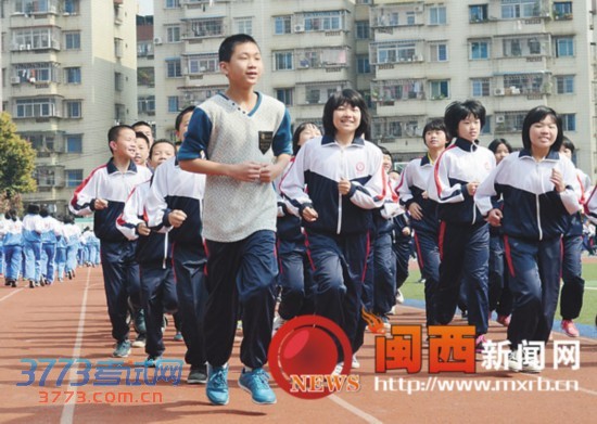 临近中考,考生们处于紧张的学习状态,压力普遍加大。4月3日,记者从龙岩五中了解到,为更好地备战中考,该校利用课间操的时间,组织学生参加体育锻炼,在缓解学生压力的同时,也为即将到来的体育科目中考做准备。图为学生们正在操场跑步。