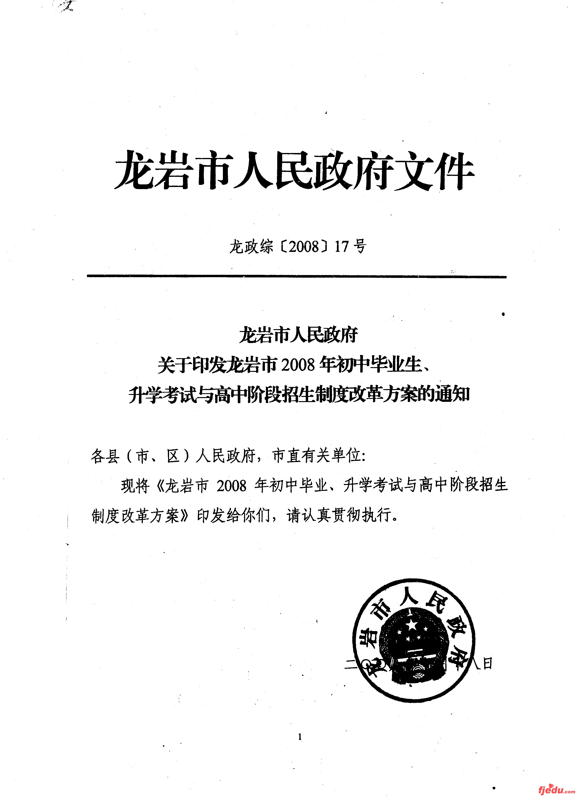 [组图]龙岩市2008年初中毕业生、升学考试与中考招生制度改革方案
