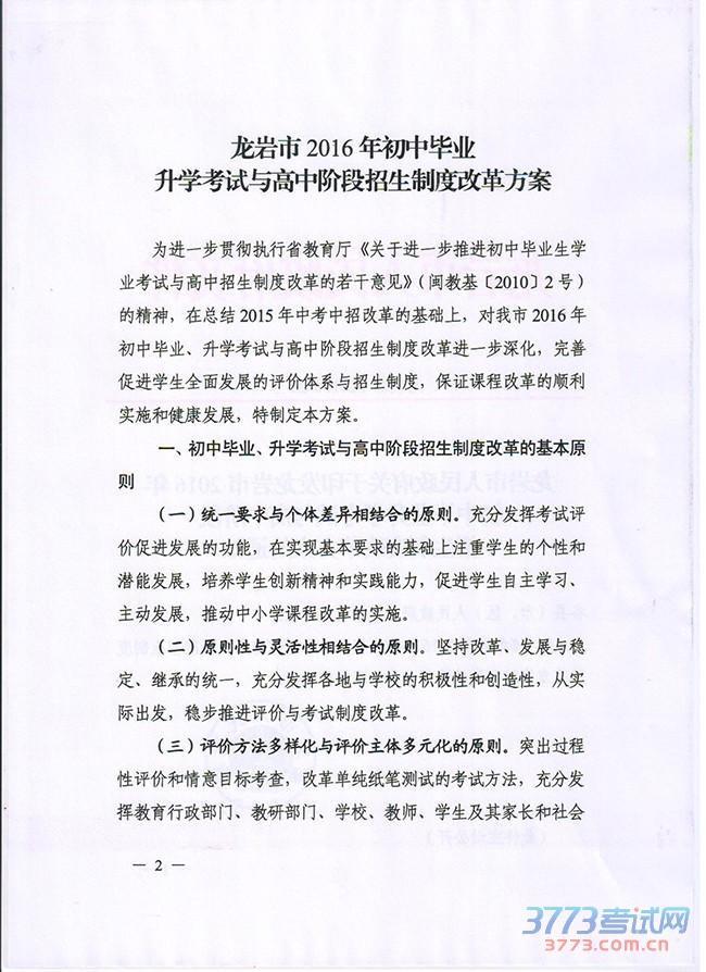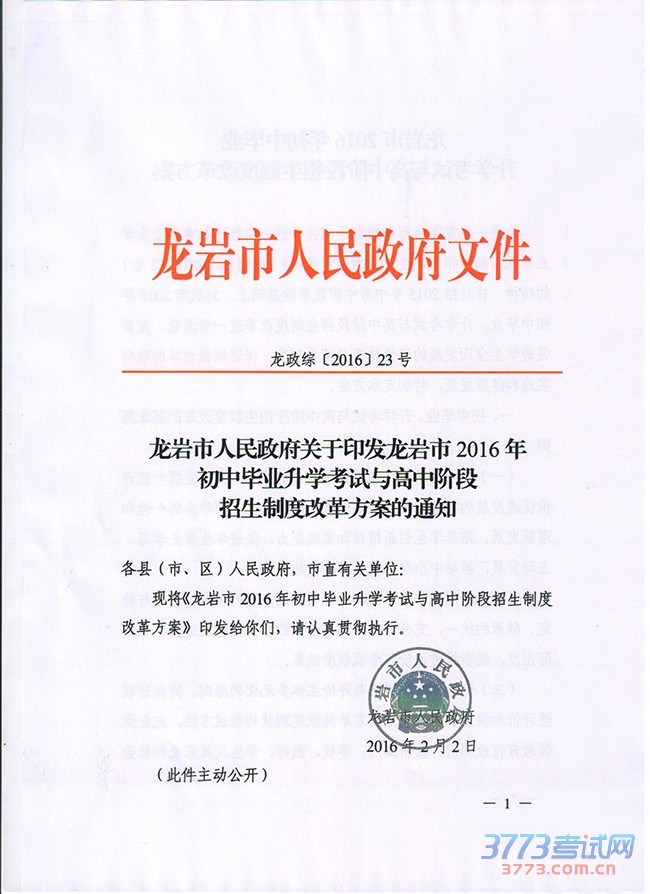 [组图]2016龙岩中考政策方案-高中招生改革方案