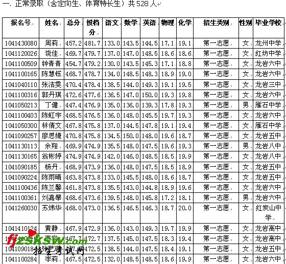 龙岩市2010年中招龙岩一中录取名单公示.doc