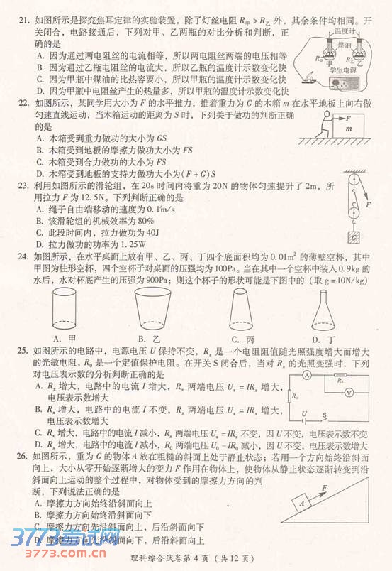 [组图]2014年泸州中考理综试题试卷