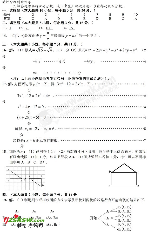 [组图]广东茂名2011中考数学试题及答案
