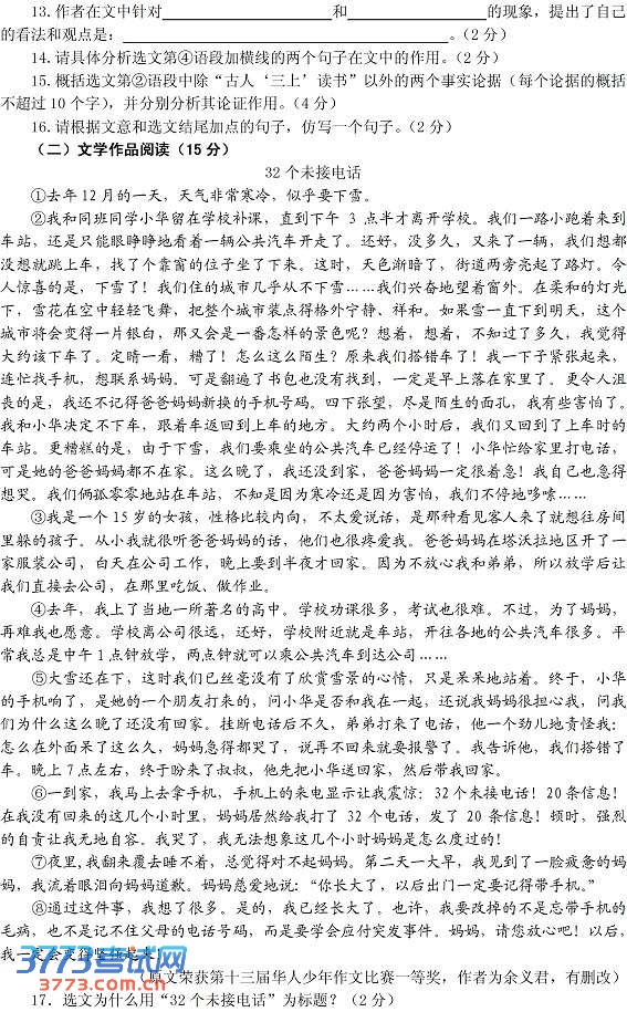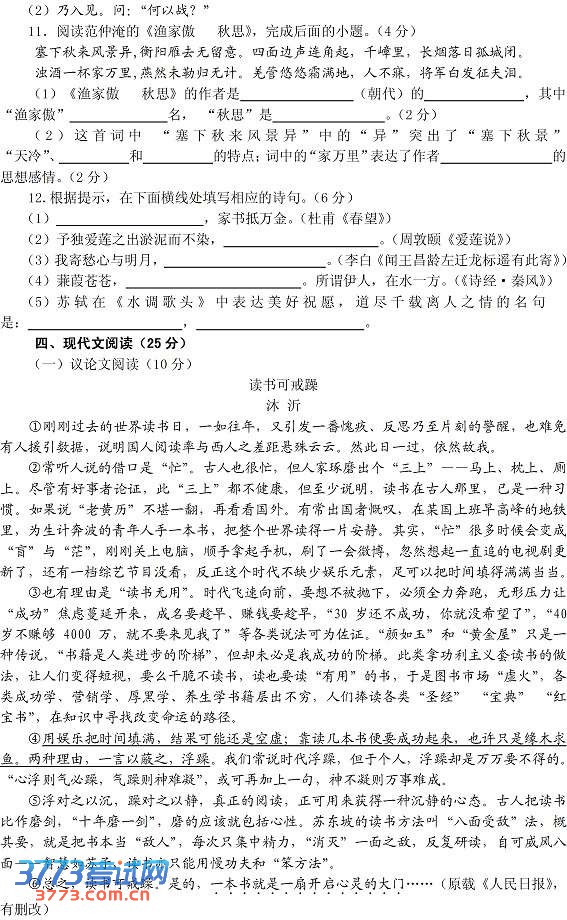 [组图]2013眉山中考语文试卷及答案发布