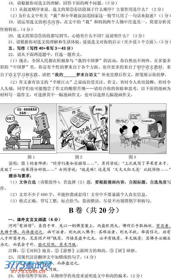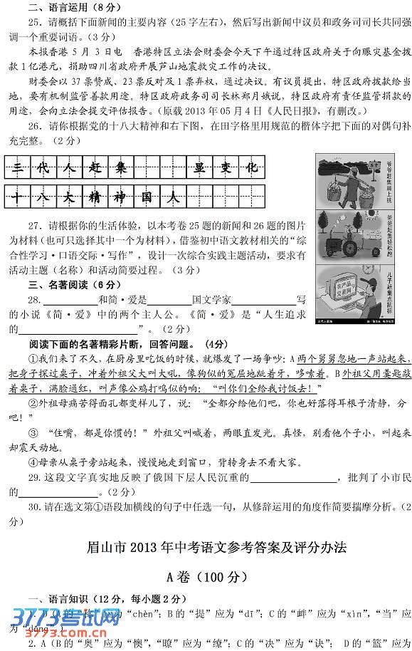 [组图]2013眉山中考语文试卷及答案发布