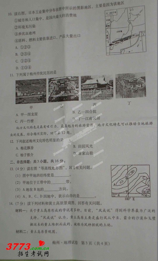 [组图]梅州市2012年中考地理试题试卷