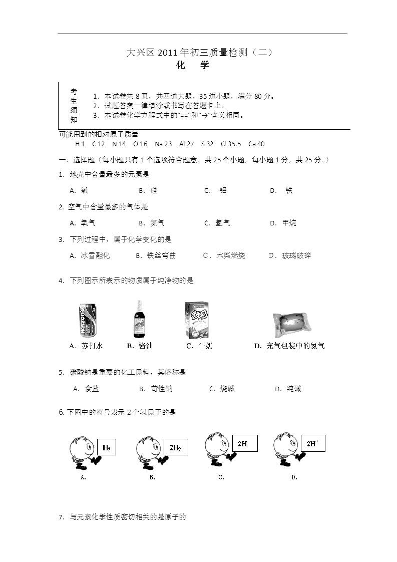[组图]北京大兴区2011中考二模化学试题
