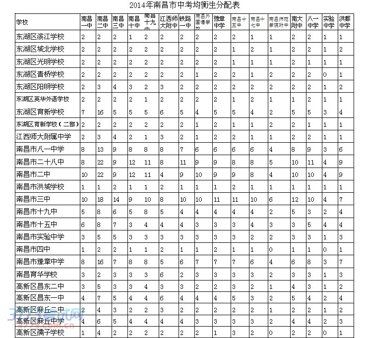 [组图]2014年南昌市中考均衡生分配指标出炉