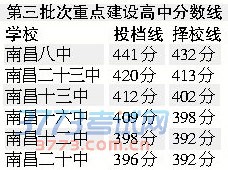 [图文]2014南昌第三批次重点建设高中分数线公布