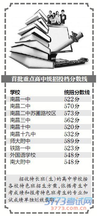 今年南昌市中考总分为650分,第一批次省级重点高中统招最低录取分数线划定为520分。