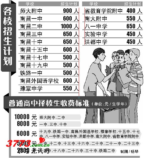 2012年南昌市市属普通高中招生计划中,城区省重点高中计划招生为9550人,较去年增加1000人,增长了11.7%。(具体招生人数如图)