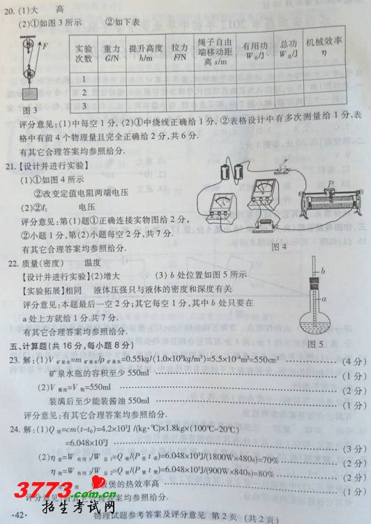 [组图]2012年江西南昌中考物理试题答案及评分标准