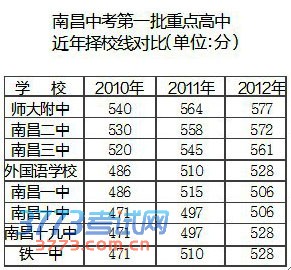 记者注意到,2010年、2011年、2012年、2013年,江西师大附中中考统招分数线分别比南昌二中统招分数线高出15分、10分、7分、6分。