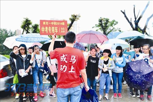上午8点,南充城区天空的大雨一直下个不停,记者在南充十中考点外看到,此时交通已经实行管制。考生们聚在一起说笑,一旁的老师则笑容满面地叮嘱考生们考试注意事项,气氛轻松融洽。