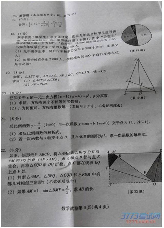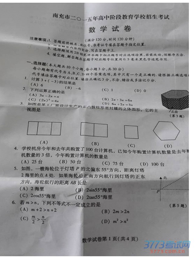 及时公布南充中考试题、答案和中考作文。祝各位考生都能取得好的成绩。2015四川南充市中考数学试题: