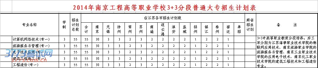 [图文]2014年南京工程高等职业学校3+3分段普通大专招生计划表