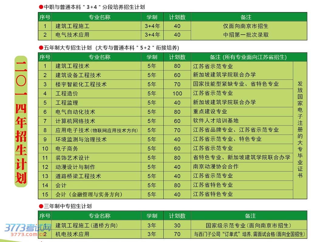 [图文]南京高等职业技术学校2014年3+4中本衔接五年制大专中专招生计划