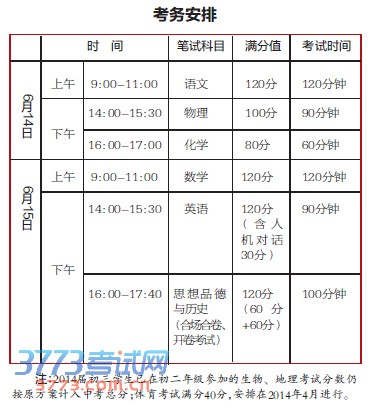 据介绍,2014年6月14日至15日(双休日),初三学生参加六场笔试。