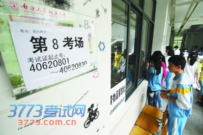 昨天?考生在南大附中考点看自己的考场?熟悉情况?本报记者徐琦摄