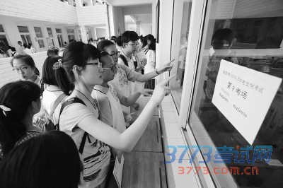 昨天,考生在第三初级中学看考场。2015年南京共有4.72万名初三学生参加中考。(钱红艳)