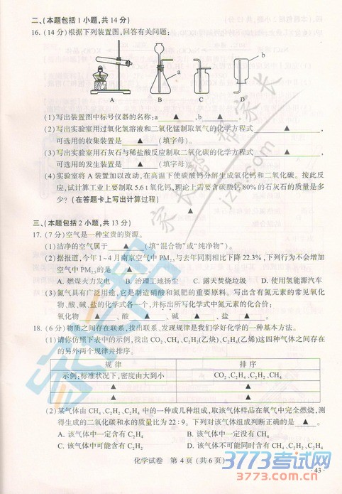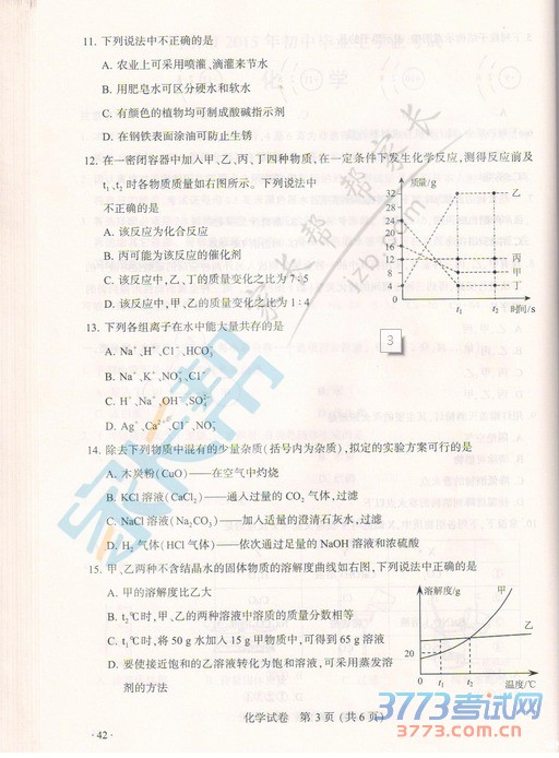 [组图]2015南京中考化学试题及答案发布