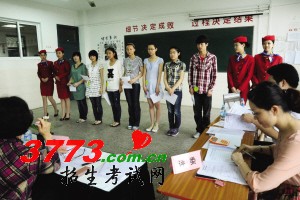 昨天上午7:30分,虽然离正式面试还有半个小时,但是设在南京旅游营养中等专业学校5楼的航空服务专业招生面试现场,300多名学生和家长已经提前入座。