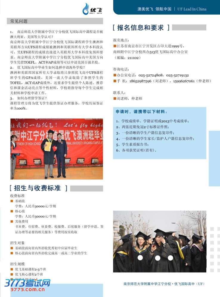 [组图]南京师大附中江宁分校2013优飞班招生信息
