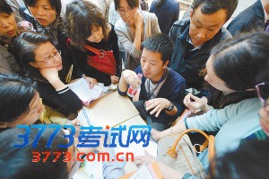 图为在南师附中中招咨询点,众多家长学生前来咨询。本报记者万程鹏摄