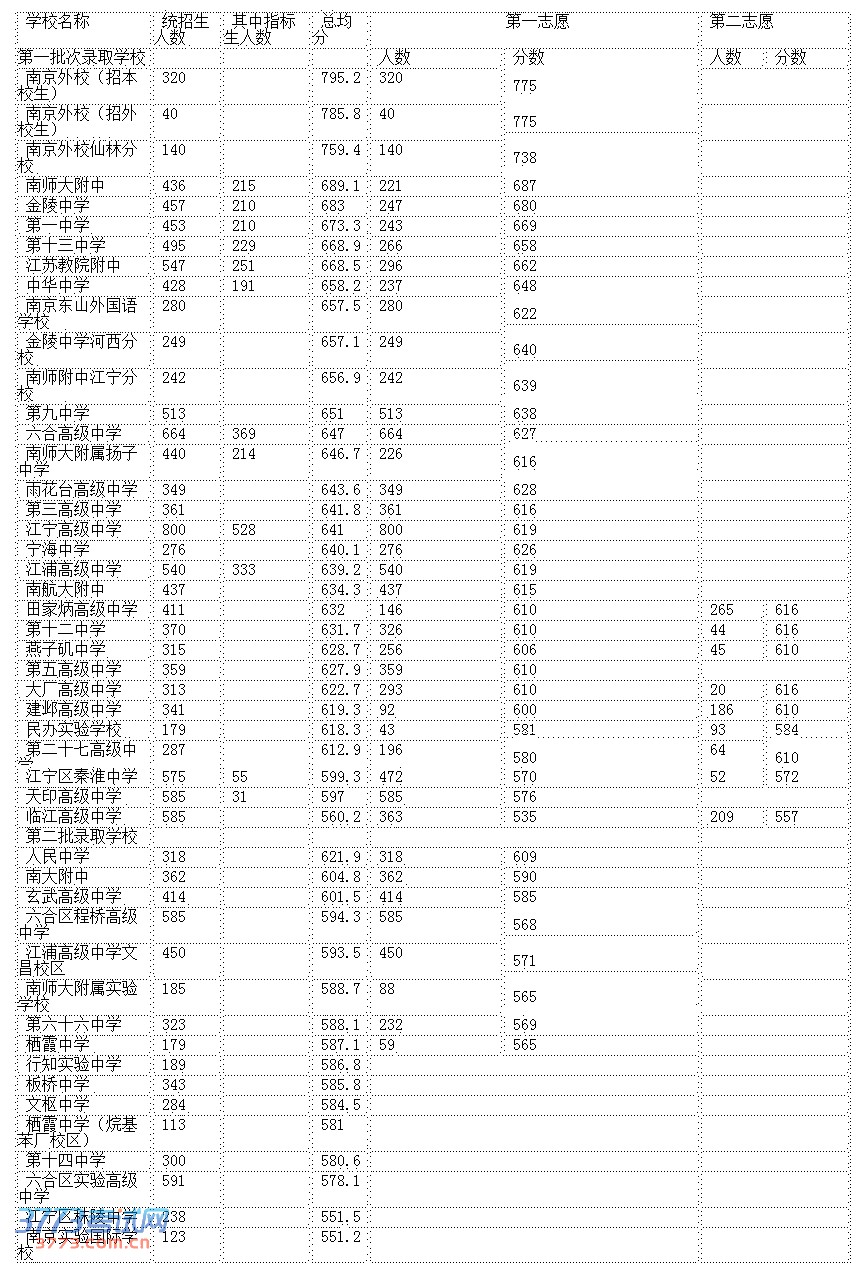 参考:2012年南京市区普通高中第一批次统招生录取情况