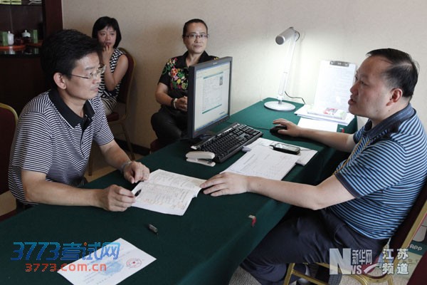 本网总编辑彭亚平(左)与南京市招办中考科科长郑斌(右)在现场交流