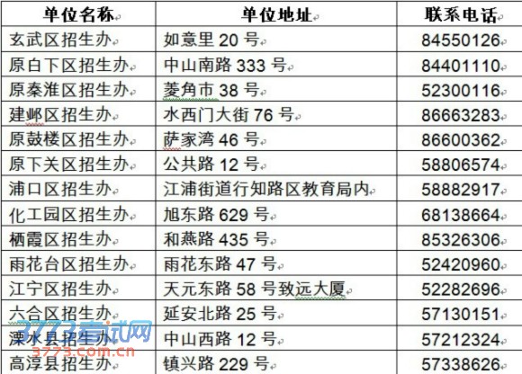 图为南京各区招办联系方式 人民网南京7月15日电 (姚媛)南京中考第二批次学校招生录取工作于7月13日开始,目前已接近尾声。记者15日从南京市招办了解到,第二批次中尚有部分普通高中和职业技术类学校还有少量招生名额,16日将对落榜生征求志愿。