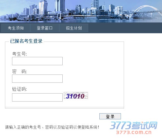 1、考生登入账号为本人考生号,初始密码为“123”,登入后必须修改;