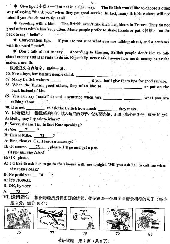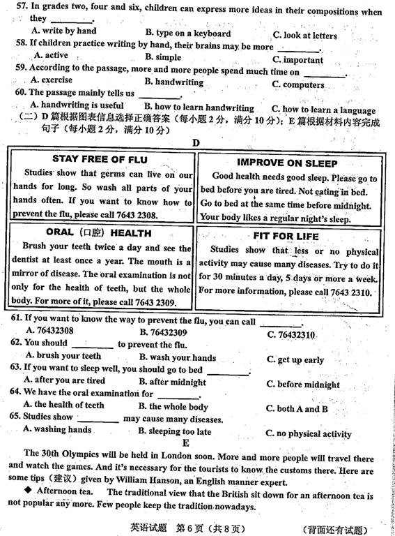 [组图]2012年福建南平市中考英语试题及答案