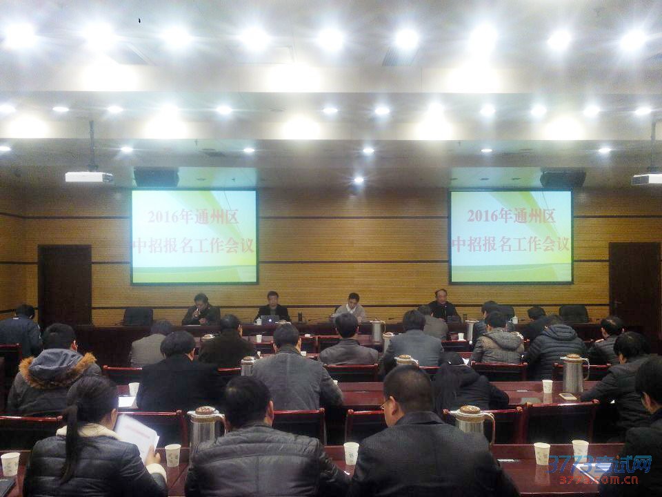 3月4日下午,通州区在行政中心第八会议室召开2016年中考报名工作会议。会上,通州招办黄亚明副主任对报考政策、工作程序、软件使用等进行了全面解读,对具体工作进行了详细布置。姜智全主任提出了关注特殊学生确保零疏漏,关注重点环节确保零差错,关注时间节点确保零延误的要求。教育局胡清华副局长要求所有学校,要做到思想上要高度重视,认真履行职责,加强政策执行,确保宣传到位,工作到位。基教科曹志荣科长就严格执行招考纪律,落实工作责任,做好学籍管理及体育考试网上项目选择提出了明确要求。