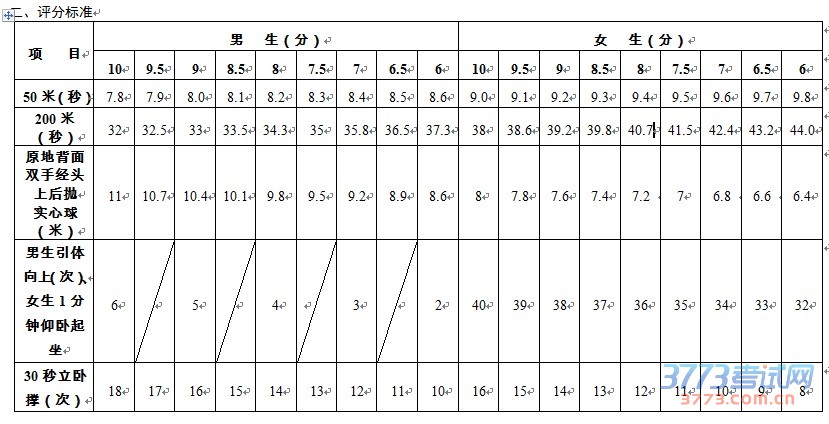 第一类:50米跑;200米跑;原地背面双手经头上后抛实心球。
