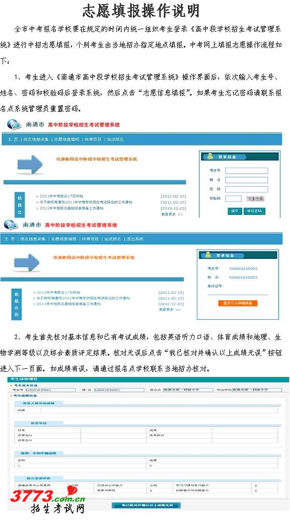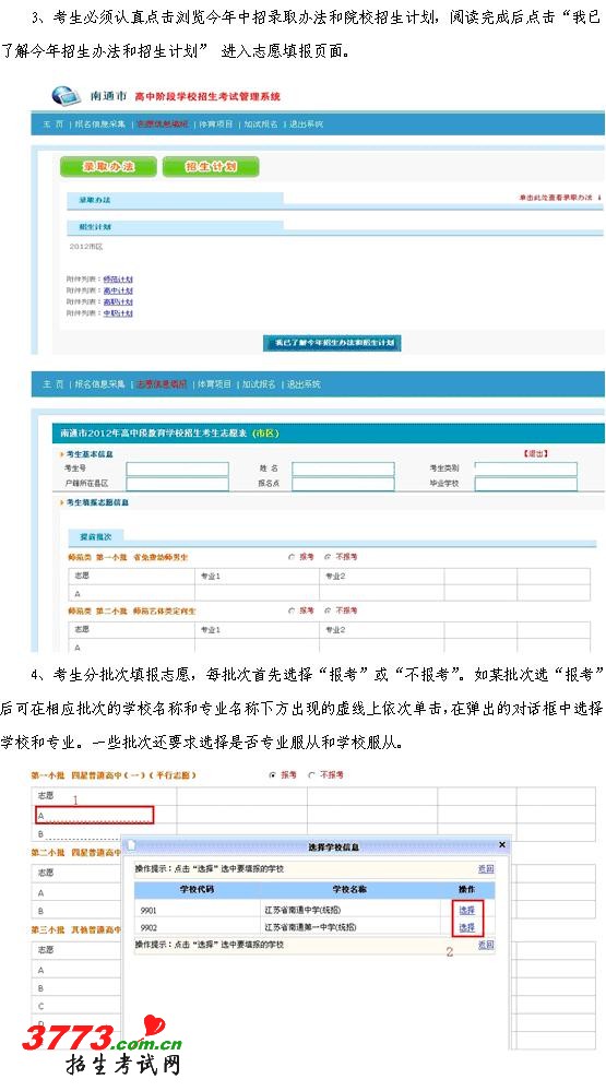 [组图]2012年南通中考志愿填报操作说明