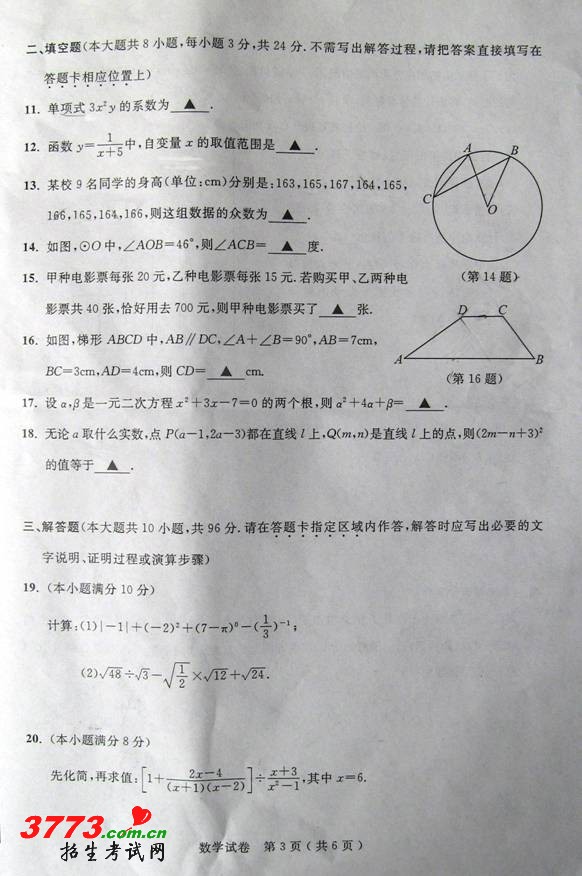 3773考试网2016中考南通中考正文