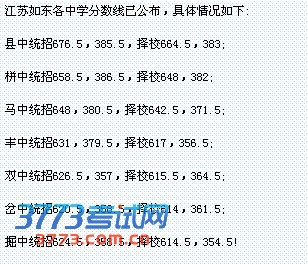 [图文]江苏南通2013年如东双甸中考录取分数线