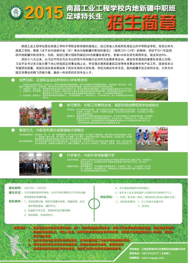 [组图]2015南昌工业工程学校新疆内职班足球特长生招生简章