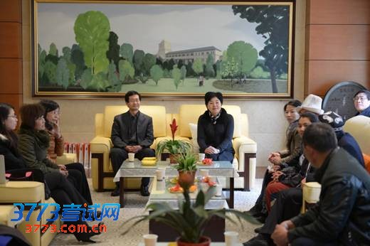 徐晓燕校长、马建昌书记、张玲雄主席在贵宾室亲切会见了考察团全体成员。徐晓燕校长向家长们详细介绍了新疆班教育教学工作和同学在校学习生活情况,并对来访家长们表达了诚挚的问候和热烈欢迎。我校高三(9)班布阿依夏的家长向学校赠送了锦旗,并代表全体家长向学校表达了真诚的感谢。之后,张玲雄主席和新疆部主任王新勇、郭东萍两位老师陪同家长参观了校园和新疆部食堂、宿舍,家长们对学校环境和学生们学习生活情况表示非常满意,很放心孩子在这里学习生活。参观完毕,各班学生代表和家长考察团成员在第七会议室进行了热情的交谈。