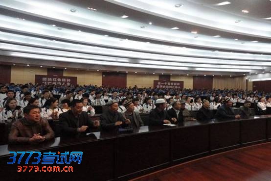 随后,新疆部全体师生在第一报告厅集合,召开全体师生与家长团的见面会,欢迎远道而来的客人们。考察团一入场,全体学生都起立,以热烈的掌声表达对见到家乡亲人的激动之情。在大会上,来自自治区内学办干部吾木提·那孜木首先向各位学生问好并一一介绍了家长团的成员。随后,我校高二22班古丽艾赛丽·拜克热同学的父亲拜克热·依明作为家长代表作了发言,他说在三中,他看到了优美的校园环境、看到了辛勤工作的老师和关心学生的领导,让女儿在这样的环境下学习生活,他很放心。接着,其余学生家长代表也与同学们做了交流。最后,吾木提·那孜木向全体同学提出了六个字的期望“感恩、责任、奉献”——勉励同学们要珍惜这来之不易的求学机会,好好学习,不辜负家乡亲人对他们的期望,为新疆人民争光,努力报效祖国!