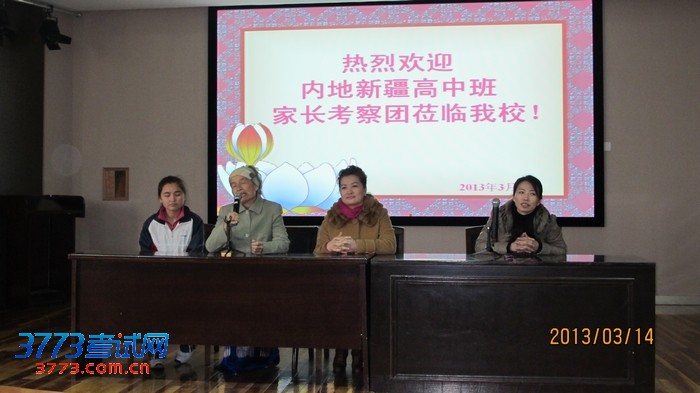 我校党总支书记兼校长卢广华、副校长王坤玉、新疆部主任仇玉婷、副主任惠鹏等接待了全体考察团成员。卢广华校长向客人介绍了我校新疆部办学情况以及新疆部同学的生活、学习情况,家长对我校对新疆学子的无私付出致以真诚的谢意,并送上锦旗表示感谢。考察团家长参观了校园、新疆部教学楼、学生宿舍和食堂,对学校提供的教育教学与生活设施感到非常满意。在新疆部多功能厅,家长一一向所有学生表达了来自家乡亲人的问候,鼓励大家刻苦学习,学有所成,将来为家乡、为国家贡献自己的力量。同学们听了都非常感动,表示自己要努力学习,不辜负家乡亲人的深情嘱托。