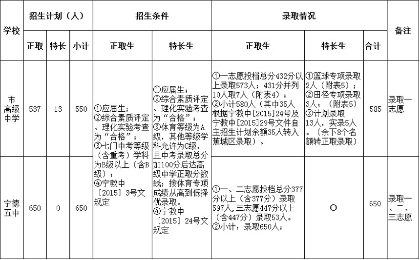 [组图]2015宁德市高级中学宁德五中新生录取情况说明
