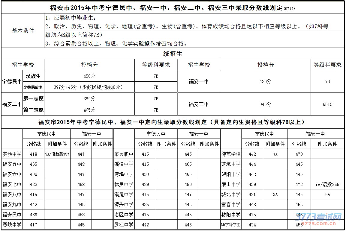 [图文]2015福安中考宁德民中福安一中二中三中录取分数线