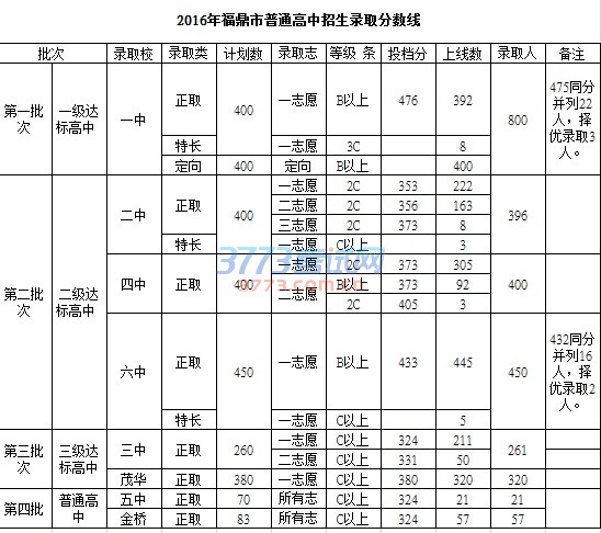 经福鼎市招生委员会2016年第3次全体会议研究,现将2016年福鼎市普通高中招生录取分数线予以公布。