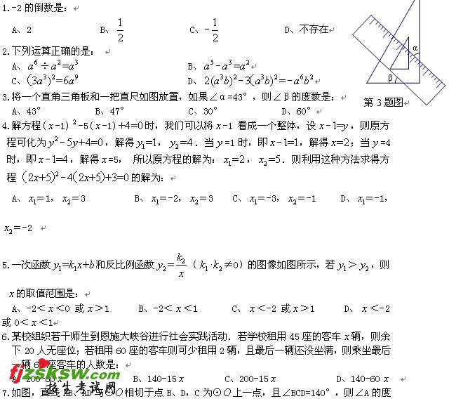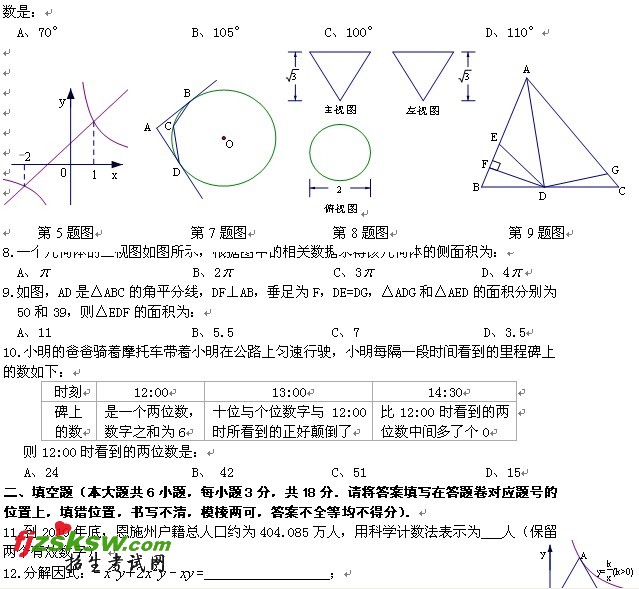二0一一年恩施自治州初中毕业生学业考试