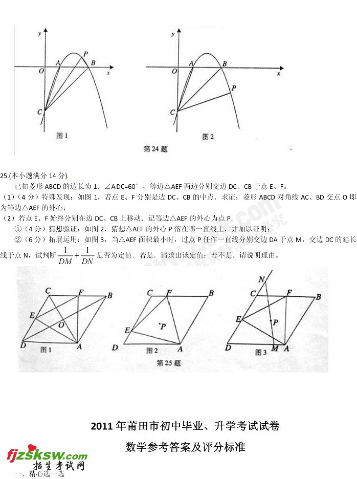 [组图]福建莆田2011中考数学试题及答案