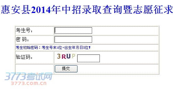 [图文]2014泉州惠安县中招录取查询暨志愿征求入口