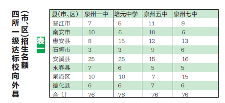 今年秋季,泉州一中、培元中学、泉州五中、泉州七中面向鲤城区、丰泽区、洛江区、台商投资区除外的县(市、区),各招收76名高一年统招生。