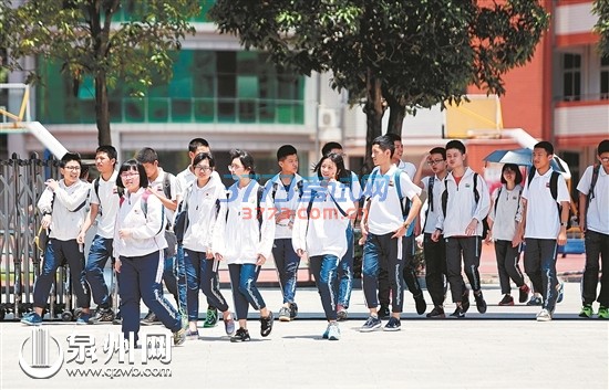为期三天的中考昨日开考。图为昨日上午,泉州现代中学的考生走出考场。(陈晓东 摄)