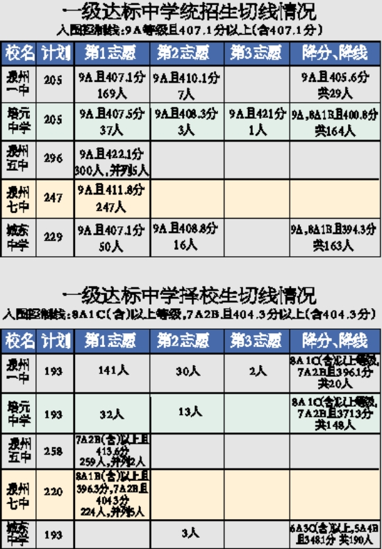 市区普高录取切线 市区普通高中招生录取分五个批次,第一批次录取填报“面向各县(区、市)招生的达标高中、民办高中”志愿的考生,已被该批次学校录取的考生将不再参加其他批次学校的录取。第二批次为市区5所省一级达标高中录取,北师大泉州附中的50名统招生同批录取。第三批次为其他达标高中录取。第四批次为民办高中录取。第五批次为一般完中录取。5所省一级达标学校面向市区的招生于本月26日录取,省二级、三级达标中学的录取于27日进行,各完中的招生录取将于本月28日前结束。 市区普通高中招生录取严格执行有关规定,坚持志愿优先原则,招生学校不得录取没有志愿的考生。坚持择优录取原则,以考生参加中考的所有学科成绩的等级和中考语文、数学、英语三科总分(含因政策照顾加分或按规定扣分的实际分数)为依据,按照考生报考的志愿顺序,从高分到低分进行择优录取。如需要降分数降等级录取时,按照先降分数后降等级的原则进行。达标高中录取的体育考试成绩须达到C级及C级以上。填报五年专师范类志愿的考生,经面试落选,但考试成绩达到一级达标高中录取等级和分数的考生,可以参加一级达标高中投档录取。普通高中录取工作结束后,任何学校不得擅自改变录取结果。 |